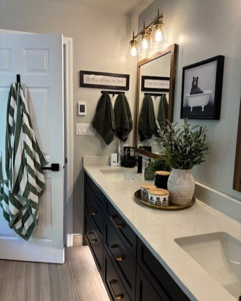 This project may have been small, but it included some of our favorite features. Renovating this ensuite turned it from a practical but dated space, into a luxurious and functional paradise. Heated floors make for a cozy experience any time of the day, and a built-in timer lets them be warmed up in time for your morning and bedtime routines. Instead of a traditional stone look, we utilized tiles with wood styling for a warmer feel. Literally.