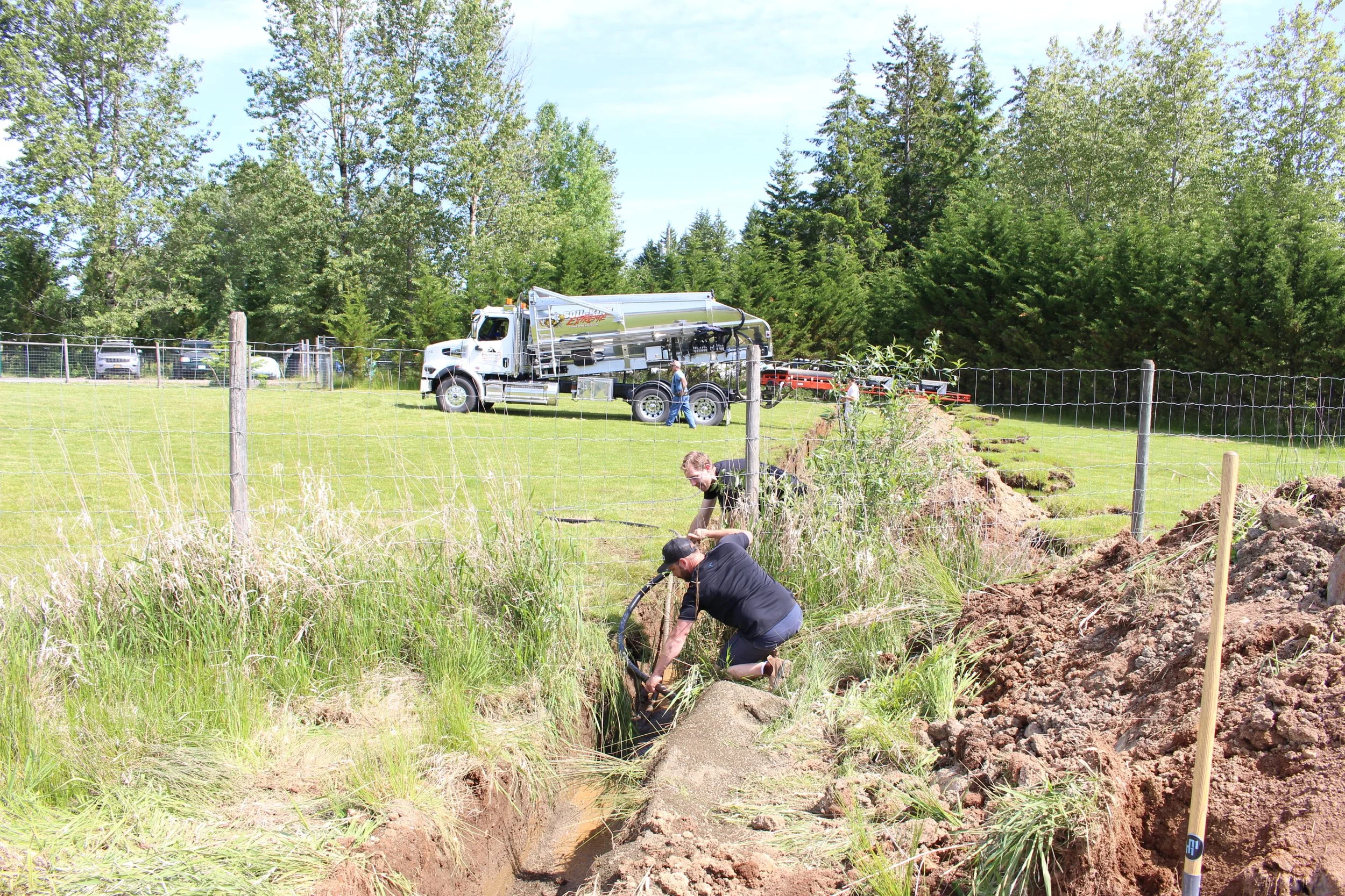 While running an electrical line to a new building, we got to enjoy the sun, and the fresh Black Creek air on this beautiful farm. We also got to work with one of our favorite partners Huxham Contracting Limited. They brought their brand new slinger truck and we got to see it in action for one of its first jobs.
